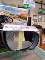 施工後ミラー面を触ったり、拭いたり、近くで高圧洗浄しちゃうとコーティングが剥がれちゃいます・・・