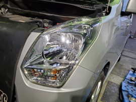 車両の点検に入ると確かにヘッドライトの表面が劣化していて曇っている状態でした。